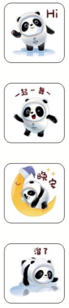 熊貓形象與富有超能量的冰晶外殼相結(jié)合,冬奧會(huì)吉祥物冰墩墩體現(xiàn)的是冬季冰雪運(yùn)動(dòng)和現(xiàn)代科技的特點(diǎn)。從“打招呼”、“一起舞”、“溜了”等微信動(dòng)畫表情中可以感受到冰墩墩敦厚、活潑的形象特點(diǎn),而夜空中飛翔的動(dòng)畫表情則展現(xiàn)了冰墩墩的十足科技感。