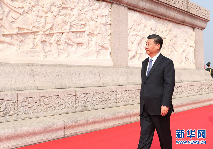 9月30日上午,習近平、李克強、栗戰書、汪洋、王滬寧、趙樂際、韓正、王岐山等黨和國家領導人來到北京天安門廣場,出席烈士紀念日向人民英雄敬獻花籃儀式。 新華社記者 申宏 攝
