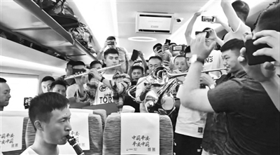 軍樂團(tuán)高鐵上即興演奏