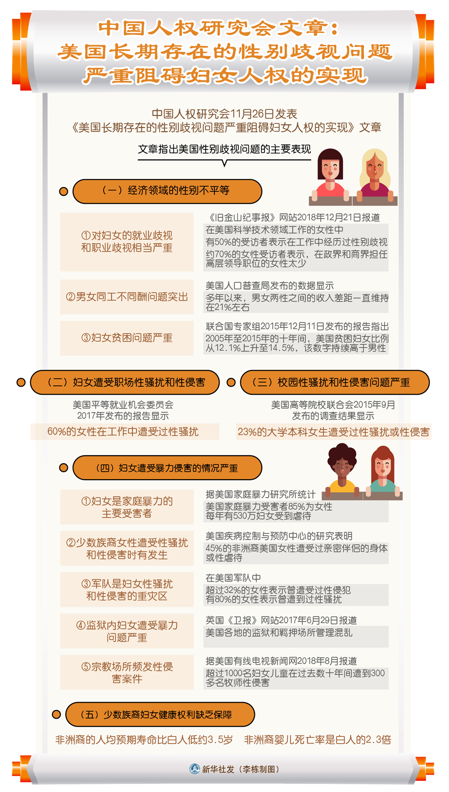 中國人權研究會文章:美國長期存在的性別歧視問題嚴重阻礙婦女人權的實現-新華網