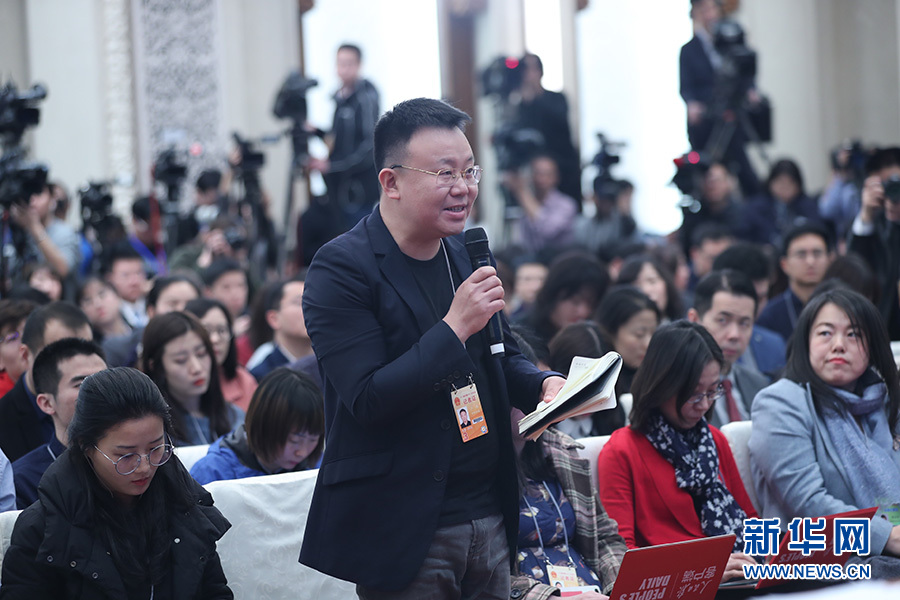十三屆全國人大二次會議3月4日上午11時15分在人民大會堂新聞發布廳舉行新聞發布會,由大會發言人就大會議程和人大工作相關的問題回答中外記者提問。圖為封面新聞記者提問。新華網/中國政府網 陳杰 攝