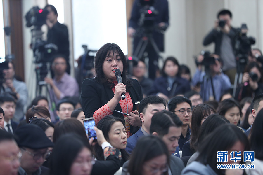 十三屆全國人大二次會議3月4日上午11時15分在人民大會堂新聞發布廳舉行新聞發布會,由大會發言人就大會議程和人大工作相關的問題回答中外記者提問。圖為法制日報、法制網記者提問。新華網/中國政府網?王健 攝