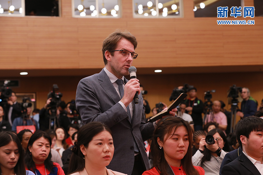 十三屆全國人大二次會議新聞中心于3月6日(星期三)上午10時在梅地亞中心新聞發(fā)布廳舉行記者會,邀請國家發(fā)展改革委主任何立峰,副主任寧吉喆、連維良就“大力推動經(jīng)濟(jì)高質(zhì)量發(fā)展”相關(guān)問題回答中外記者的提問。圖為彭博新聞社記者提問。新華網(wǎng)/中國政府網(wǎng) 馬娟 攝