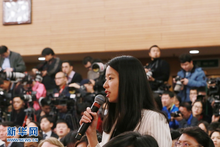 十三屆全國人大二次會(huì)議新聞中心3月8日10時(shí)在梅地亞中心新聞發(fā)布廳舉行記者會(huì),邀請(qǐng)國務(wù)委員兼外交部長王毅就“中國外交政策和對(duì)外關(guān)系”相關(guān)問題回答中外記者提問。圖為人民日?qǐng)?bào)記者提問。新華網(wǎng)/中國政府網(wǎng)?馬娟 攝