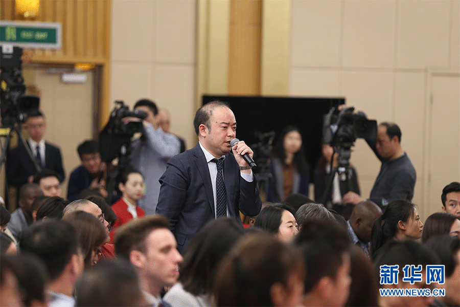 十三屆全國人大二次會議新聞中心3月9日(星期六)10時30分在梅地亞中心新聞發(fā)布廳舉行記者會,邀請商務(wù)部部長鐘山、副部長兼國際貿(mào)易談判副代表王受文、副部長錢克明就“促進(jìn)形成強(qiáng)大國內(nèi)市場 推動全方位對外開放”相關(guān)問題回答中外記者提問。圖為日本經(jīng)濟(jì)新聞記者提問。新華網(wǎng)/中國政府網(wǎng) 劉廈 攝