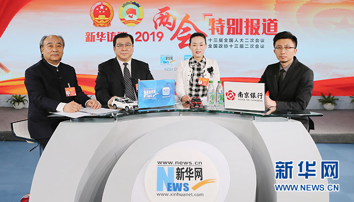3月9日,全國人大代表、安徽省亳州市市長杜延安;全國人大代表、古井集團董事長梁金輝;全國人大代表、亳州市健身氣功五禽戲協會主席陳靜做客新華網2019全國兩會特別報道。新華網 毛嘉煒攝。