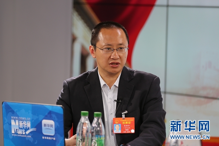 3月11日,全國人大代表、中國電信汕頭分公司國際海纜登陸站站長陳穎宇做客新華網2019全國兩會特別報道。新華網 毛嘉煒 攝