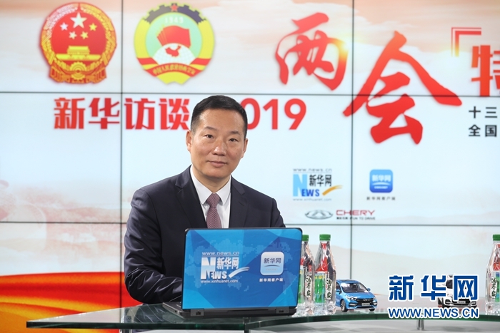 3月14日,全國人大代表、聯(lián)泓新材料科技股份有限公司董事長鄭月明做客新華網2019全國兩會特別報道。新華網 郭小天 攝