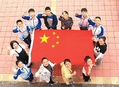 新中國成立70周年之際,河南武陟縣黨員干部走進校園,帶領學生開展國旗教育。