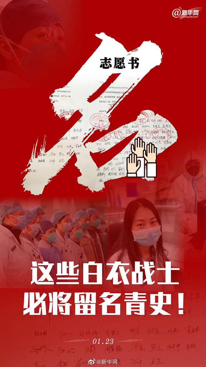 “我深知這場戰(zhàn)役的艱巨性”“下一站天門南,我下車回武漢”“我報(bào)名”……新型冠狀病毒肺炎疫情防控形勢嚴(yán)峻,不斷攀升的數(shù)字讓人揪心、痛心。但這些天,全國各地那些醫(yī)護(hù)人員的話,常常讓我們熱淚盈眶!1月23日,又見安徽百余名醫(yī)護(hù)人員在志愿書上簽名,請求去一線抗擊新型肺炎。張慧、孫朋、劉平平、沈佳佳、方芳……一個(gè)個(gè)普通的名字,卻讓人肅然起敬!他們也是普通人,也是某個(gè)人的父母或孩子。但現(xiàn)在,他們是醫(yī)生,是護(hù)士,是白衣戰(zhàn)士!這場戰(zhàn)役必將勝利,也請你們務(wù)必好好保護(hù)自己,平安歸來。(趙剛/文 盛瑞麗/圖)