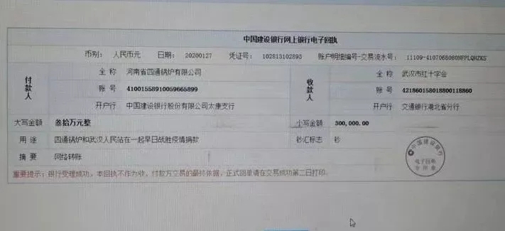 1月27日,太康縣首屆“最美退役軍人”、河南省四通鍋爐有限公司總經理馮坤,在防控新型冠狀病毒感染肺炎的嚴峻斗爭中,主動向武漢紅十字會捐款30萬元,用于支持疫情防控。
