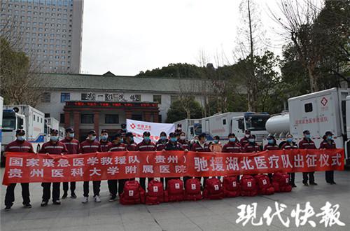 2月9日,根據國家衛生健康委安排,國家緊急醫學救援隊(貴州)馳援湖北武漢執行傳染病救治任務。救援隊由貴州醫科大學附屬醫院急診醫學科、感染管理科、內科ICU、省緊急救援中心96999、檢驗科、影像科、肝膽外科等科室共42名人員組成。