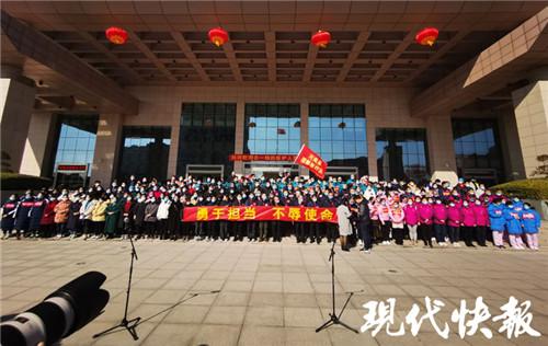 2月9日17點10 分,來自安徽省16個地市的醫院及安醫一附院、合肥京東方醫院,由100名醫生200名護士共300人組成的超強“戰隊”踏上了 “戰疫”之路。