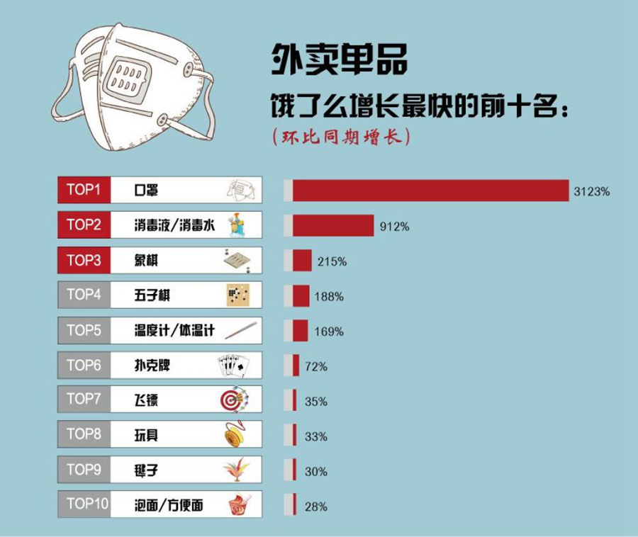 1.口罩、勞防用品、消毒液增速如此之快,這是要成為宅家標配嗎?看來小伙伴們已經(jīng)get到了防護必備技能。