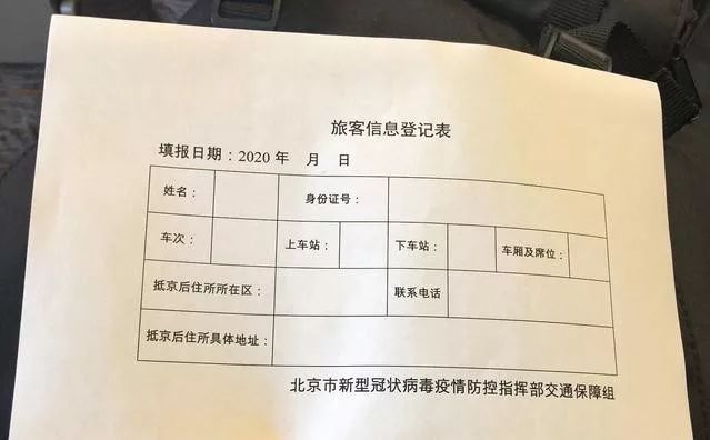 △外地抵京的鐵路乘客須填寫(xiě)《旅客信息登記表》