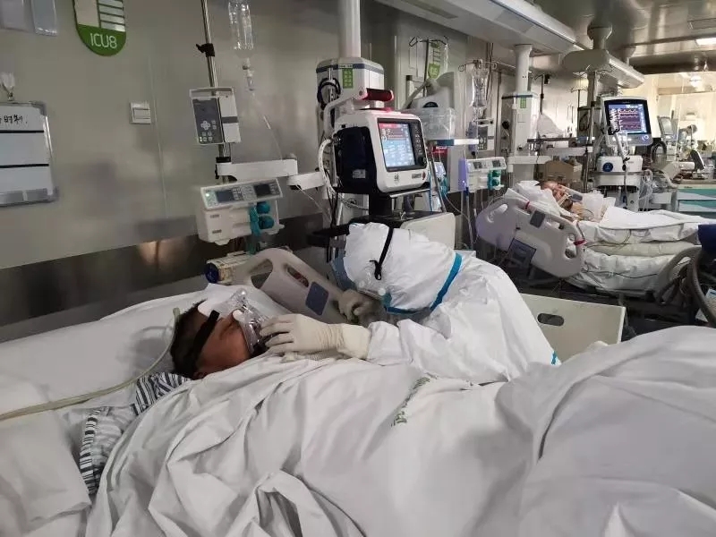 本來想讓她適應之后,安心休息,但隨著時間延長,她雖然心理上接受了,可是氣道壓過大,呼吸機還是漏氣,還是需要有人陪著,我只好幫她扶著無創面罩,保持不漏氣的力度。阿姨的呼吸慢慢平穩了,在我趴著的時候,她用武漢話對我說,謝謝你,丫頭,我舒服多了,好人有好報……那一刻,我覺得用自己學到的技能幫到了患者,挺溫暖的。