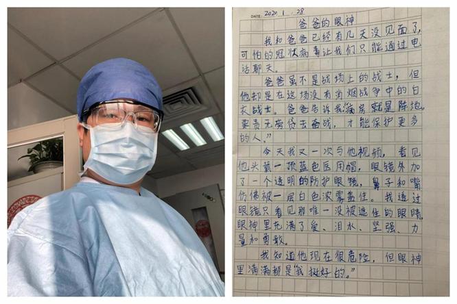 厚厚的防護服把爸爸包裹的嚴嚴實實