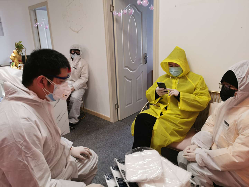 中午有別人贈(zèng)送給我們的面包、牛奶、方便面,我們躲在一個(gè)房間湊合著弄一下,要不就不吃,能堅(jiān)持就不吃。一天吃不了什么東西,而且又戴著口罩、穿著防護(hù)服。最后累得不想說(shuō)話,坐著,發(fā)個(gè)呆,休息一會(huì)兒,然后再回家。