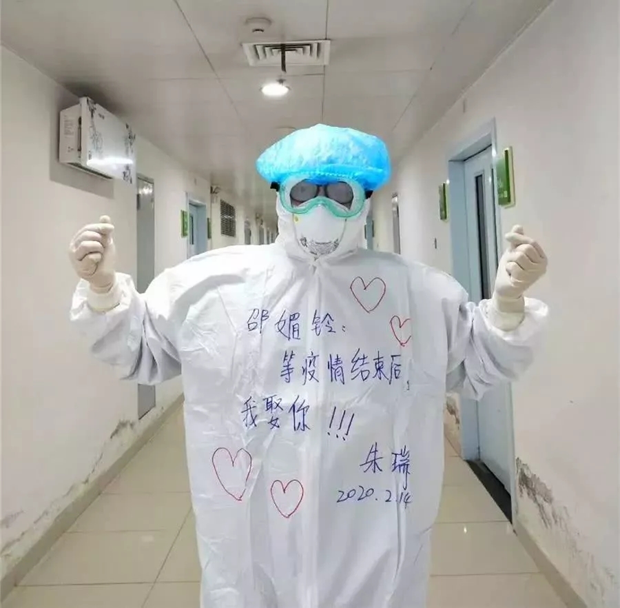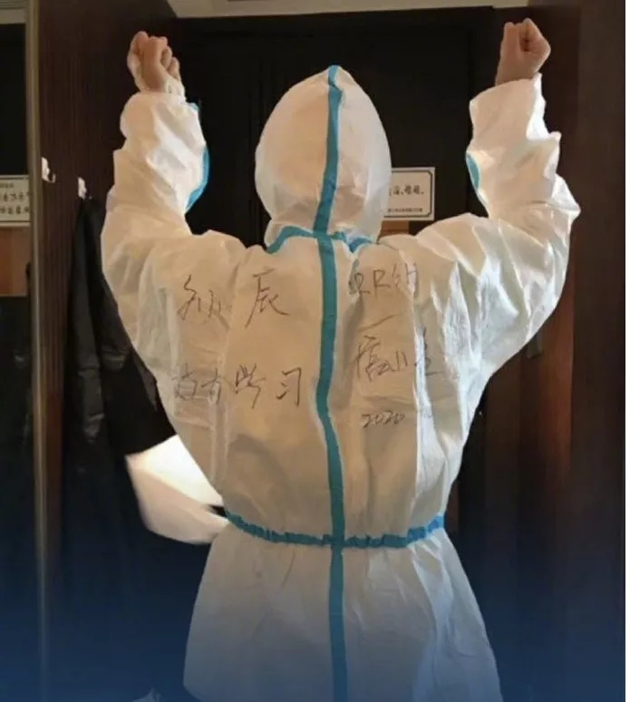 每名醫(yī)護(hù)人員防護(hù)服上的字