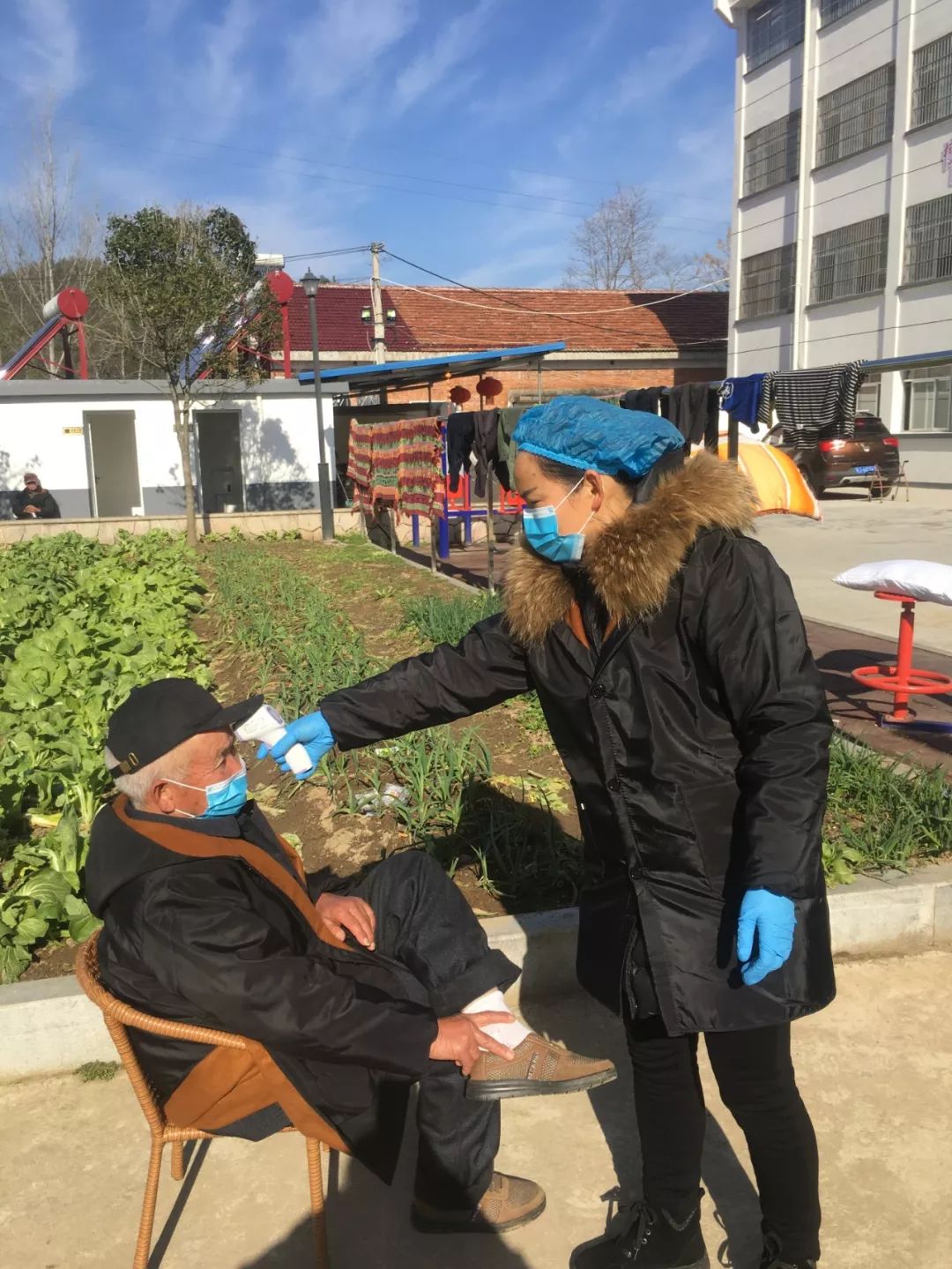 九、建議老人不要串門,盡量在院子空曠處曬太陽。