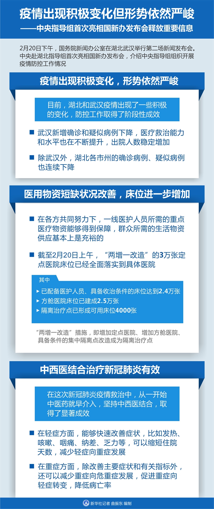 新華社武漢2月20日電 題:疫情出現積極變化但形勢依然嚴峻——中央指導組首次亮相國新辦發布會釋放重要信息
