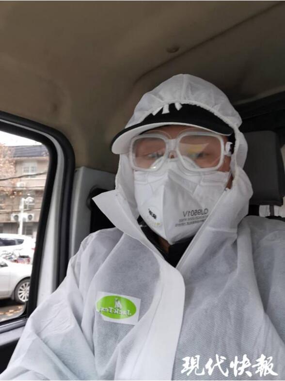 因為當時救護車不夠用,街道臨時征用了兩輛面包車,把它改裝了一下。車內(nèi)放的都是板凳,開車就要很小心。而且,戴著護目鏡,經(jīng)常有霧氣看不清,為了自身安全,我要戴護目鏡,但是為了車輛安全,又不能戴護目鏡,所以有時候也是很糾結(jié)。