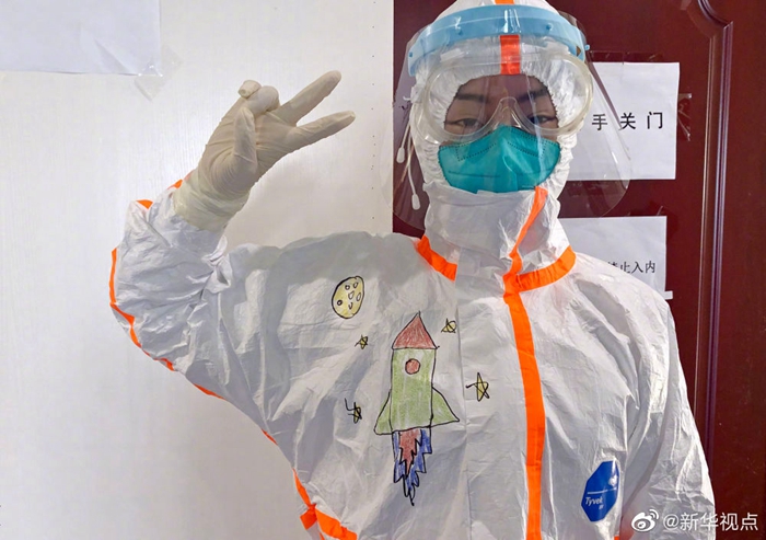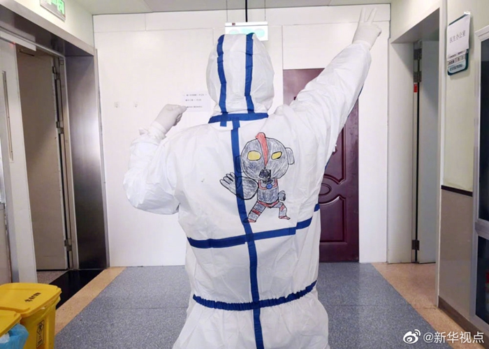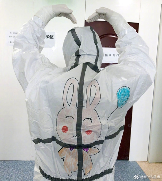 武漢兒童醫(yī)院新冠肺炎患兒隔離病房里,不少住院小朋友見(jiàn)到被防護(hù)服層層包裹的醫(yī)護(hù)人員時(shí),曾經(jīng)的第一反應(yīng)是害怕和抗拒。護(hù)士王佳想到了一個(gè)妙招:在防護(hù)服上面畫(huà)卡通畫(huà),再讓小朋友涂色。在她的帶動(dòng)下,病區(qū)里很多醫(yī)務(wù)人員都也這么做。一幅幅承載著愛(ài)心的畫(huà),沖淡了疫情給孩子們的心理壓力。(記者才揚(yáng);武漢兒童醫(yī)院供圖)