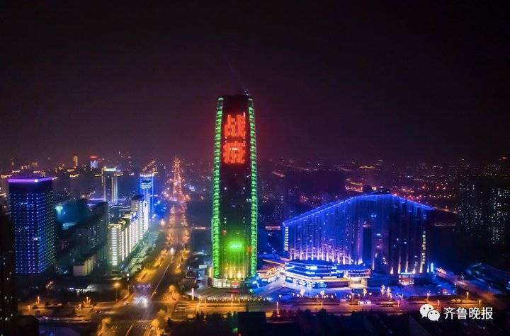 2月22日19時整至20時整,山東十六市的各大地標建筑在同一時間一起璀璨點亮。