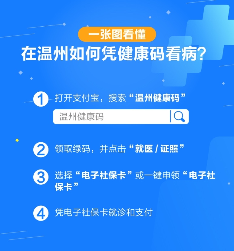 方法很簡單,溫州市民打開支付寶搜索“溫州健康碼”,領取綠碼后點擊“就醫/證照”,將喚起“電子社保卡”(未申領市民可一鍵申領“電子社保卡”),就能實現掛號、取號、就診、檢驗檢查、取藥等醫院就診和醫保支付應用,患者不再需要攜帶實體就診卡,大大簡便了看病流程。