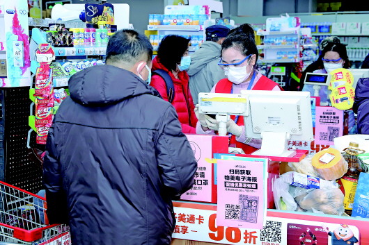 疫情之下,顧客的情緒比較大,有時結賬慢一點,后面就有人抱怨。恐慌和焦慮的情緒也傳導到我們收銀員團隊,說不怕是假的,病毒看不見、摸不著。有的同事也動搖過,想辭職,好在單位配發了口罩、手套和護目鏡,在收銀臺設置一米等待線,我們心里慢慢踏實了。現在收銀團隊一個人也沒走,還增加了人手。