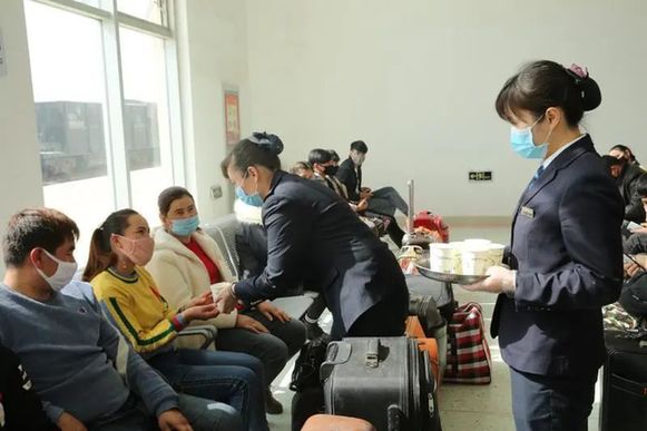 在列車上,庫爾勒客運(yùn)段設(shè)置了隔離室,每2小時(shí)對務(wù)工人員測溫,增加對列車內(nèi)部設(shè)施設(shè)備消毒頻次,列車廣播循環(huán)播放新冠肺炎預(yù)防知識(shí)宣傳,確保務(wù)工人員順利抵達(dá)目的地。