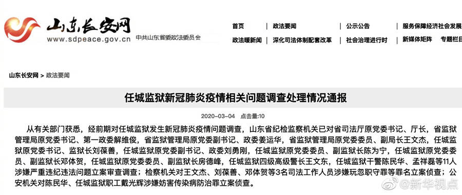 司法部:對(duì)任城監(jiān)獄疫情事件將堵塞漏洞深化整改
