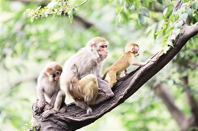 生活在貴陽(yáng)市黔靈山公園內(nèi)的獼猴 記者 徐譚攝