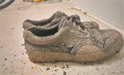 讀完,一連串問題從記者腦中冒出來。這是誰的鞋?放在哪里?為什么會踩進水泥里?