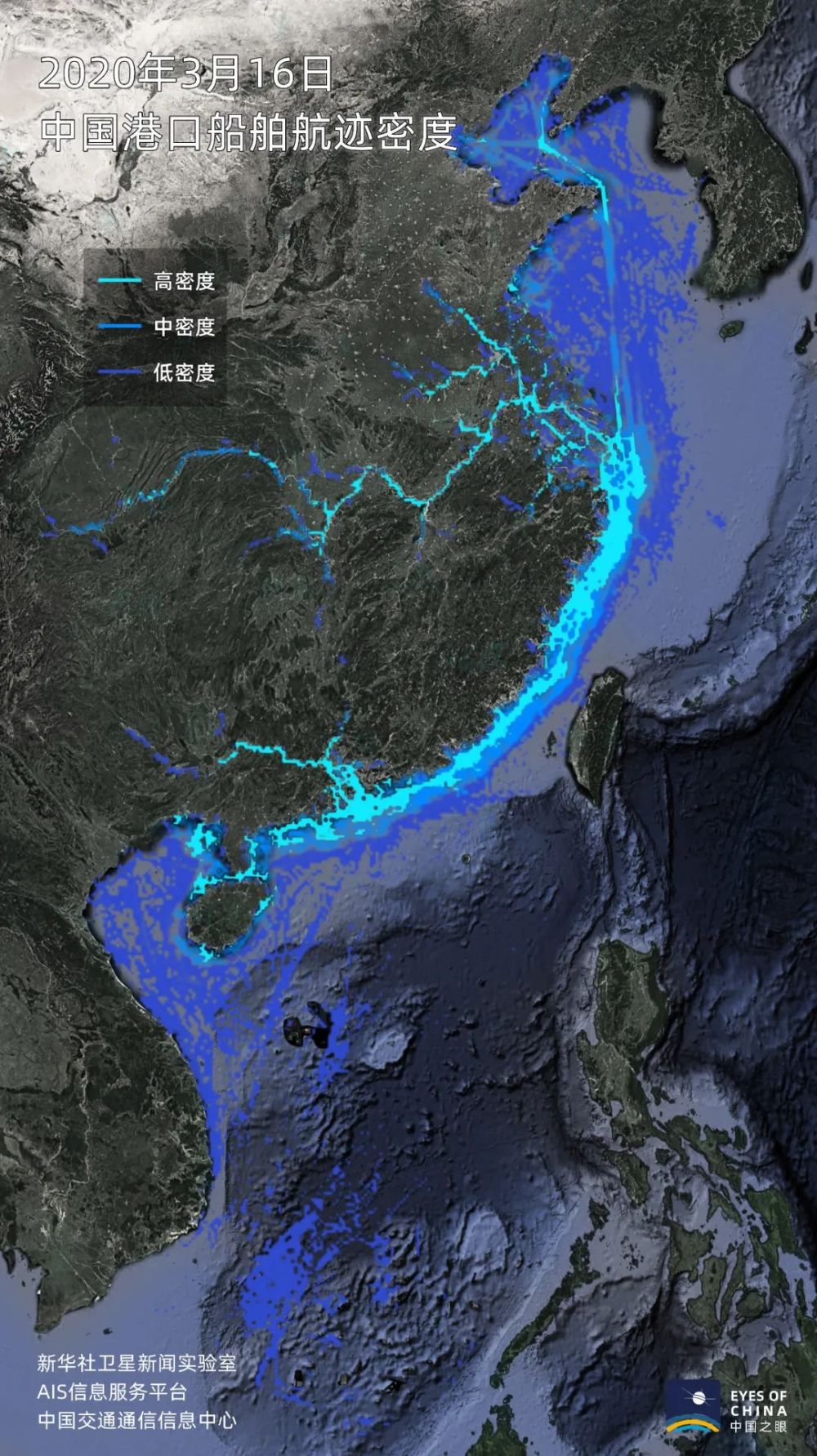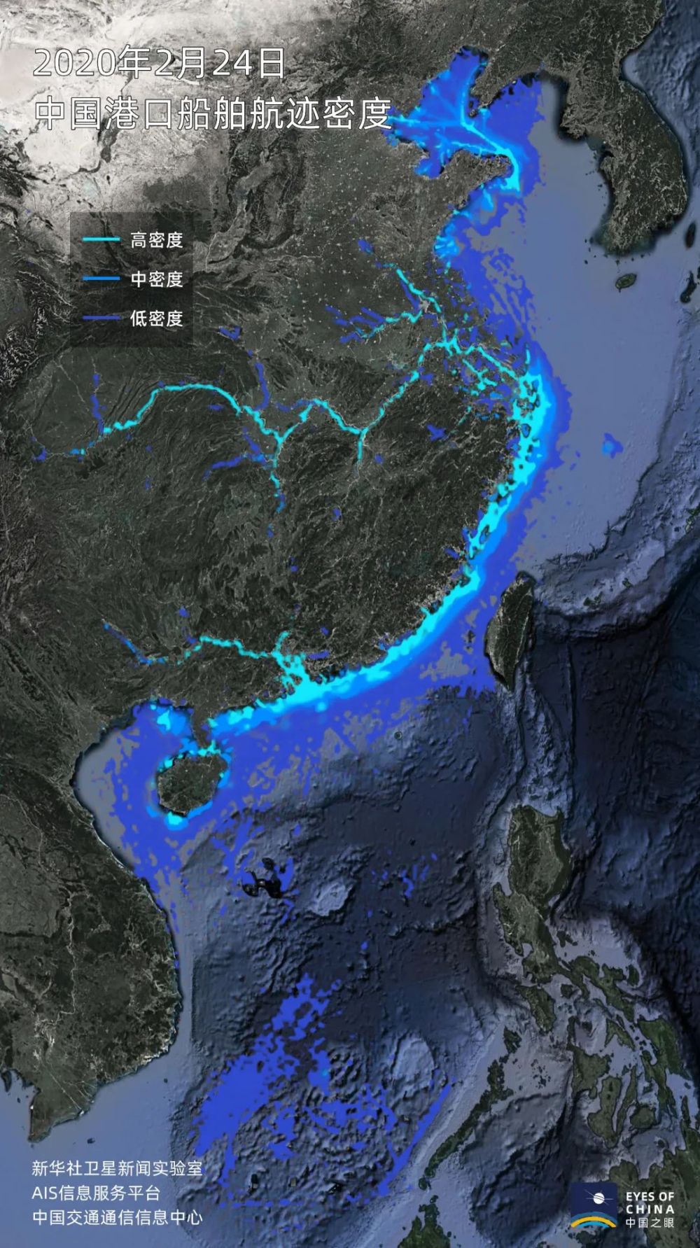 根據通信衛星等方式獲得的船舶信息,中國沿海及內河的船舶活躍度正在快速提升。