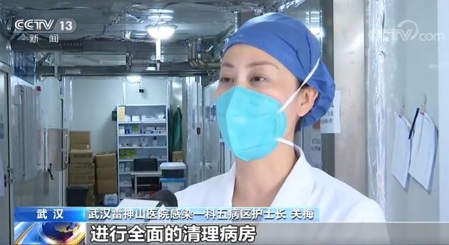 武漢雷神山醫院感染一科五病區護士長 關梅:我們病區結束工作以后,護士還將進入艙里全面清理病房,整理儀器、設備、藥品,歸類并做消殺。