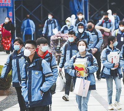 圖為3月30日,江蘇淮安,江蘇省清江中學學生有序進入校園。趙啟瑞攝(影像中國)