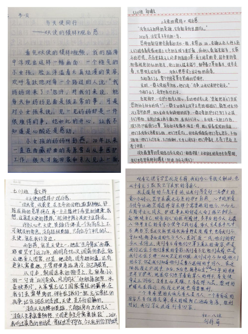 北京師范大學長春附屬學校的學生們留言,