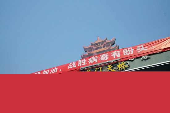 武漢街頭的抗疫橫幅。