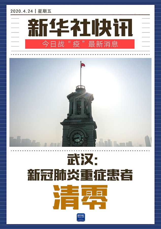 國家衛生健康委新聞發言人、副司長米鋒在24日舉行的國務院聯防聯控機制新聞發布會上說,剛剛得到消息,隨著最后一例新冠肺炎重癥患者治愈,今天,武漢重癥病例實現了清零。(記者張泉、劉夏村)
