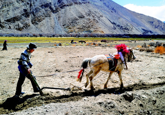 高山厚土壓縮了空間,但拉長(zhǎng)了時(shí)間。比起地處平原的拉薩等地,這里的春耕整整晚了兩個(gè)月。