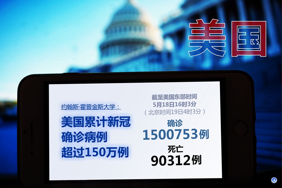 新華社紐約5月18日電? 美國約翰斯·霍普金斯大學(xué)18日發(fā)布的新冠疫情最新統(tǒng)計數(shù)據(jù)顯示,美國累計新冠確診病例超過150萬例。