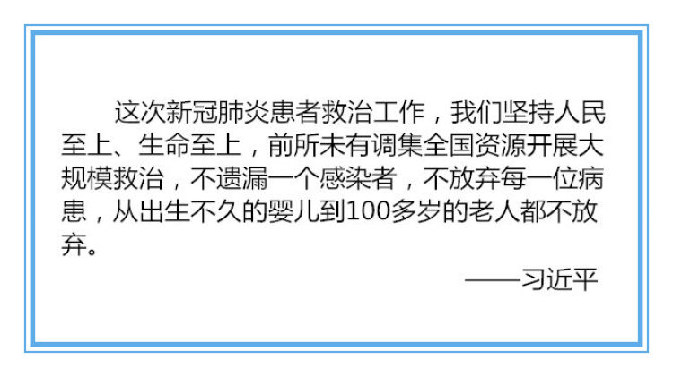 “什么叫人民至上?這么多人圍著一個(gè)病人轉(zhuǎn),這真正體現(xiàn)了不惜一切代價(jià)。”總書記說。