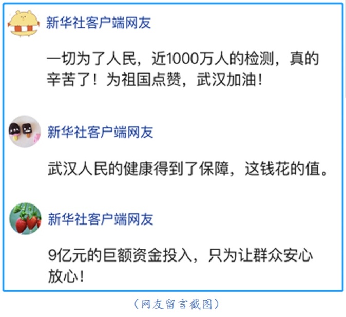同樣在武漢,5月14日以來,近990萬人參加了政府組織的集中核酸檢測(cè),總支出大約9億元。