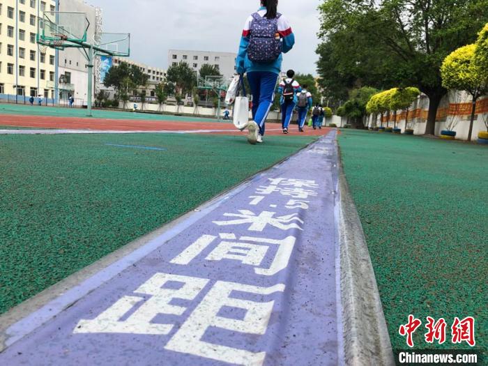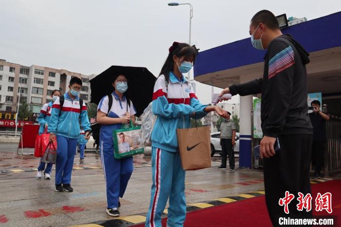 6時30分,該校初三學生陸續返回校園。在校門前,他們按照地面上的標識保持間距,經過測溫、手部消毒后進入教學樓。當天,729名初三年級學生錯峰、錯時抵達教室。