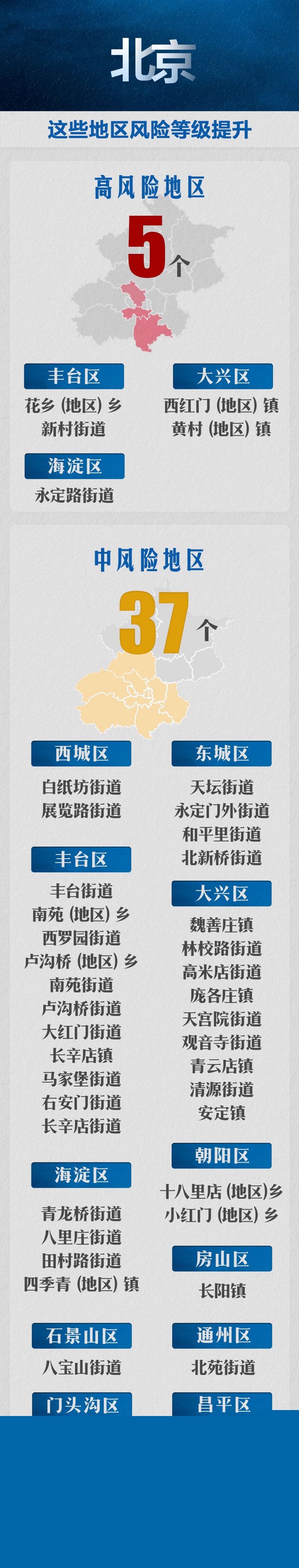 目前,北京有5個高風險區和37個中風險區。