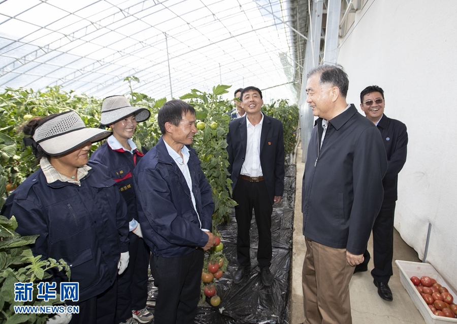 7月6日至8日,中共中央政治局常委、全國政協(xié)主席汪洋在西藏調(diào)研。這是7月7日,汪洋在日喀則白朗縣察看果蔬種植,與務工群眾交流。 新華社記者 黃敬文 攝
