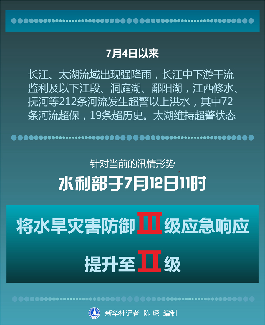 水利部有關(guān)負(fù)責(zé)人說(shuō),應(yīng)急響應(yīng)級(jí)別提升后,水利部將進(jìn)一步加密水情監(jiān)測(cè)和滾動(dòng)預(yù)報(bào)頻次,每天不定期進(jìn)行會(huì)商研判,加大對(duì)長(zhǎng)江、太湖流域的防汛指導(dǎo)力度。