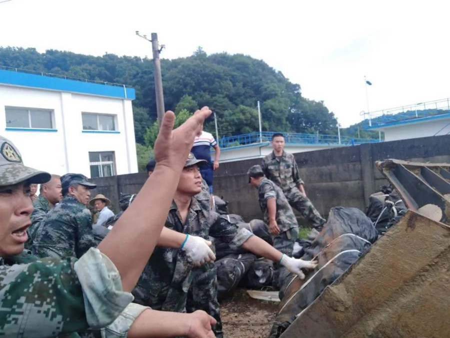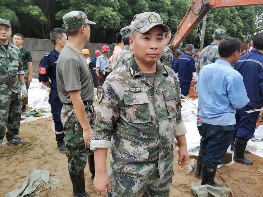 當地搶險人員、武警安徽總隊池州支隊140名武警官兵第一時間趕赴現場,東至縣人武部同時組織90名地方民兵緊急支援,陳壽春位列“前鋒”。