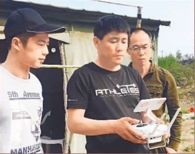 張海軍(中)在學(xué)習(xí)無人機(jī)駕駛技術(shù)。孔欣然攝